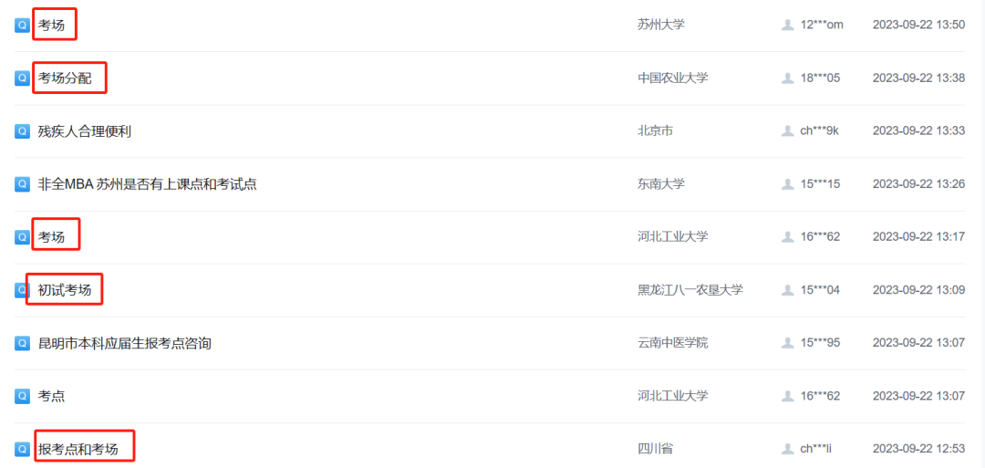 每年的考研咨询周期间,各大招生院校都会在研招网上解答考生提问,关于考场的疑问也有不少,大家可以通过研招网-在线咨询的路径点进去搜索查看。