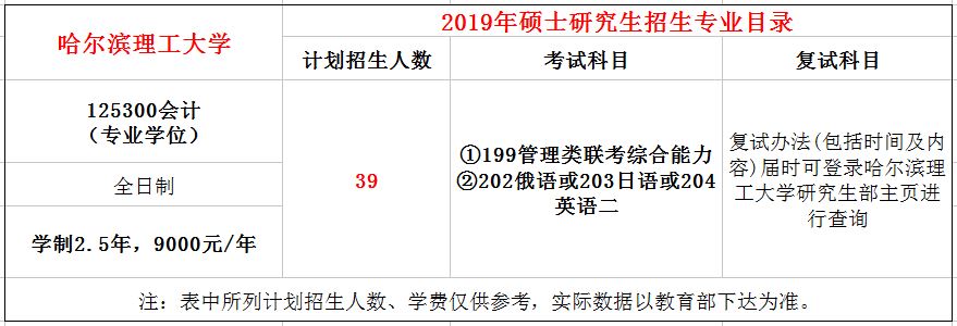 哈尔滨理工大学2019年MPAcc全日制39人,学制2 5年,学费每学年9000元。