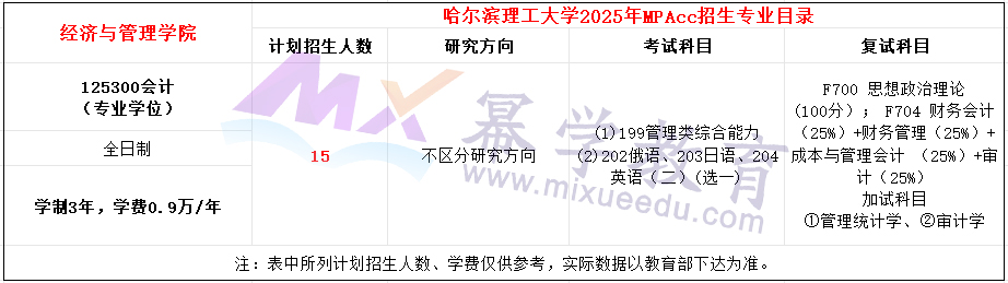 哈尔滨理工大学2025年MPAcc招生简章