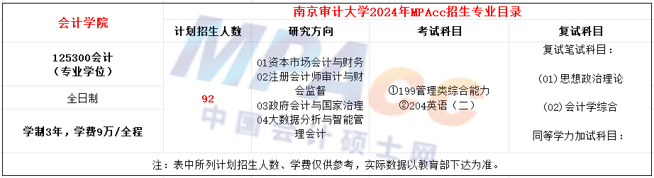 南京审计大学2024年MPAcc招生简章