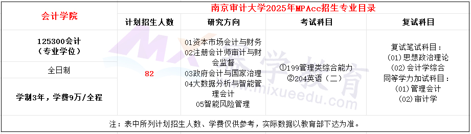 南京审计大学2025年MPAcc招生简章