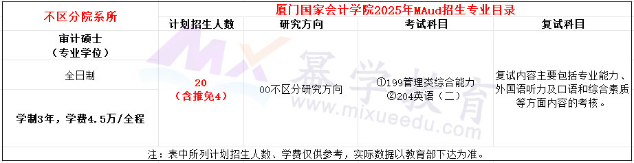 厦门国家会计学院2025年MAud招生简章