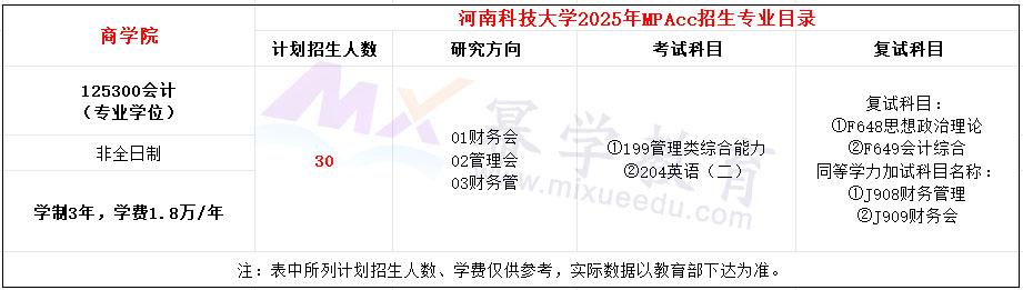 河南科技大学2025年MPAcc招生简章
