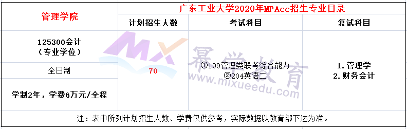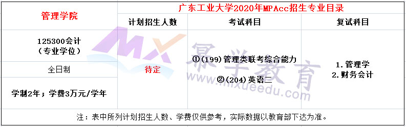 广东工业大学2020年MPAcc招生简章