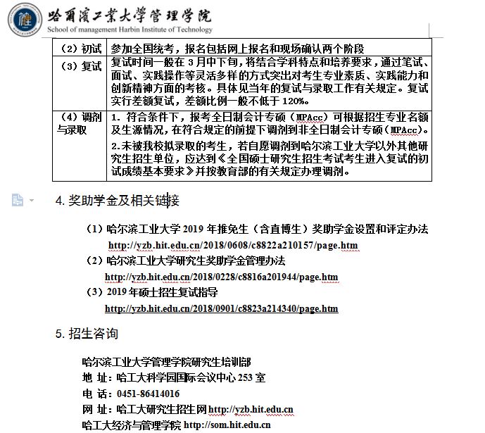 哈尔滨工业大学2024年MPAcc非全招生简章