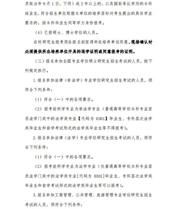 3.报名参加工商管理、公共管理、旅游管理专业学位研究生招生考试的人员,须符合下列条件: