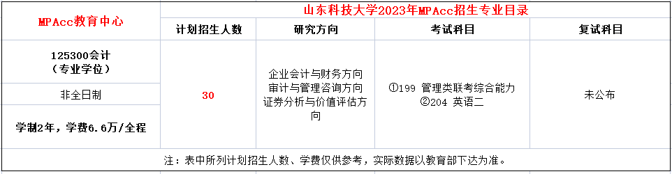 山东科技大学2020年MPAcc招生简章