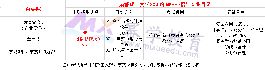 成都理工大学2022年MPAcc招生简章