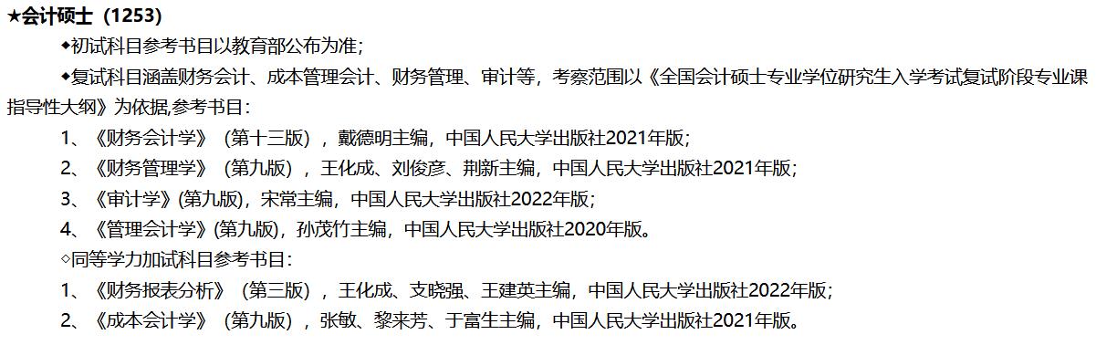 ◆复试科目涵盖财务会计、成本管理会计、财务管理、审计等,考察范围以《全国会计硕士专业学位研究生入学考试复试阶段专业课指导性大纲》为依据,参考书目: