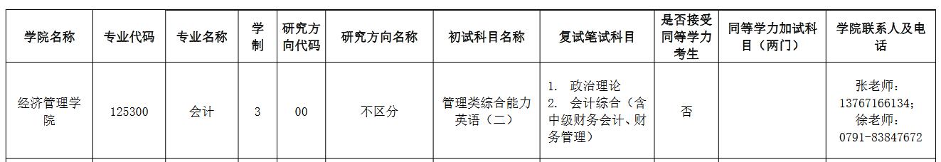 江西科技师范大学2023年MPAcc招生目录发布