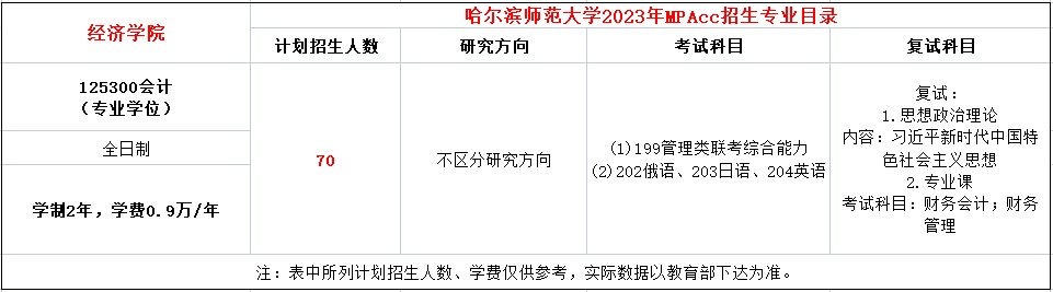 哈尔滨师范大学2023年MPAcc招生简章