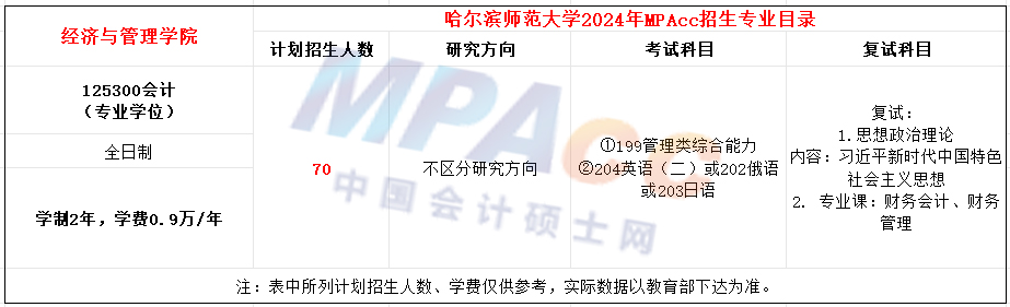 哈尔滨师范大学2024年MPAcc招生简章