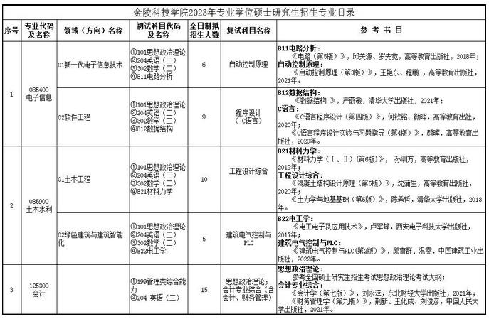 2.初试科目:详见《金陵科技学院2023年专业学位硕士研究生招生专业目录》。