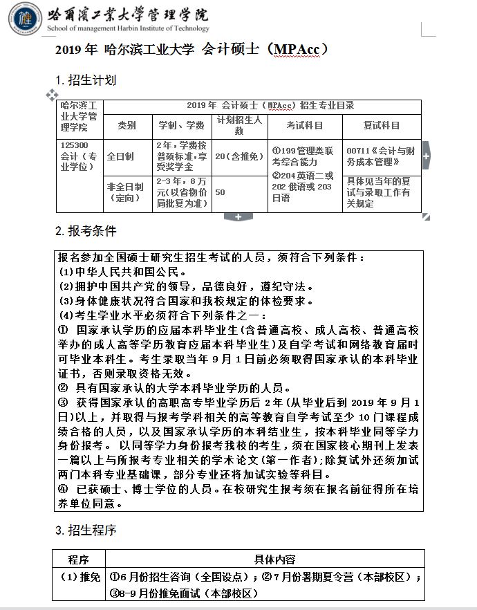 哈尔滨工业大学2024年硕士研究生招生章程已公布!MPAcc非全日制仅招收在职定向就业考生!