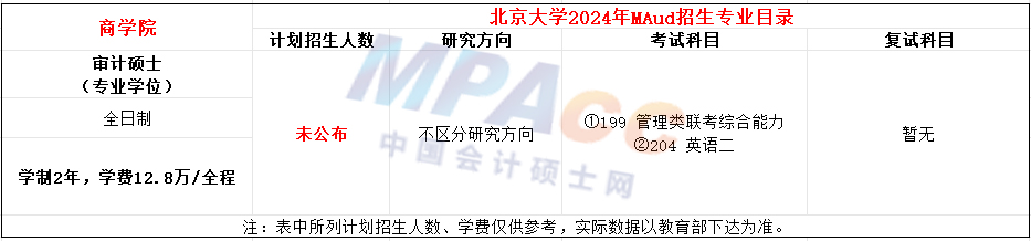 北京大学2024年MAud审计专硕招生简章