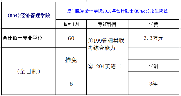 厦门国家会计学院2024年硕士研究生招生简章已公布,2024年MPAcc会计专硕全日制计划招生57人,学费全程45000元,学制3年。