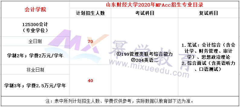 山东财经大学会计学院2020年MPAcc招生简章