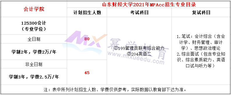 山东财经大学2021年MPAcc招生简章