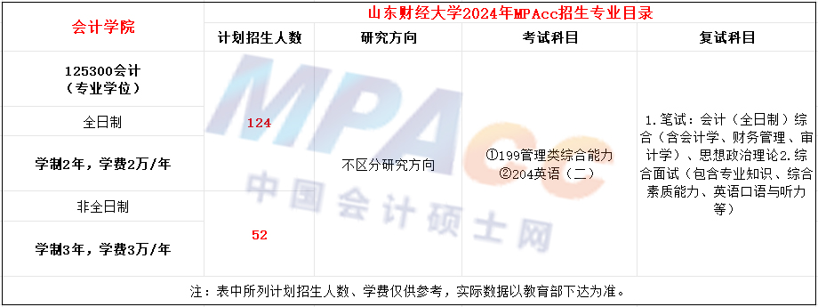 山东财经大学2024年MPAcc招生简章